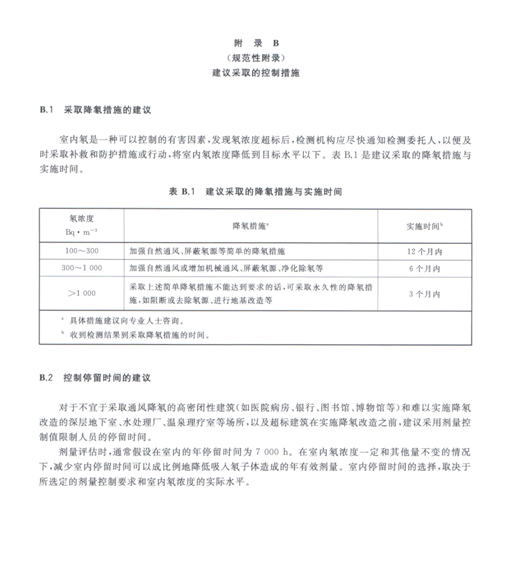 4.2.3當已建建筑物室內氡濃度超過行動水平時,應采取必要的補救行動和防護行動,以盡可能地降低室內氡濃度、減少可能受到的照射劑量(見B.1)
