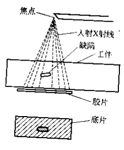 射線照相法是根據被檢工件與其內部缺陷介質對射線能量衰減程度的不同,使得射線透過工件后的強度不同,使缺陷能在射線底片上顯示出來的方法。如圖2所示,從X射線機發射出來的X射線透過工件時,由于缺陷內部介質對射線的吸收能力和周圍完好部位不一樣,因而透過缺陷部位的射線強度不同于周圍完好部位。把膠片放在工件適當位置,在感光膠片上,有缺陷部位和無缺陷部位將接受不同的射線曝光。再經過暗室處理后,得到底片。然后把底片放在觀片燈上*可以明顯觀察到缺陷處和無缺陷處具有不同的黑度。評片人員據此*可以判斷缺陷的情況。