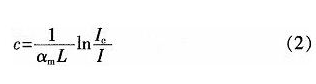 式中:αm為摩爾分子吸收系數(shù);c為待測(cè)氣體濃度;L為光和氣體的作用長度(傳感長度)。對(duì)式(1)進(jìn)行變換,得: